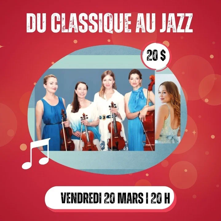 Les Chambristes du Grand Montréal et ses invités vous convient à un concert raffiné et audacieux qui unit classique et jazz, avec la magnifique voix de la chanteuse Anne-Sophie Gagnon-Métellus qui interprétera Ella Fitzgerald. Vous entendrez les œuvres emblématiques du Classique au Jazz, unissant un répertoire d’hier à aujourd’hui!
